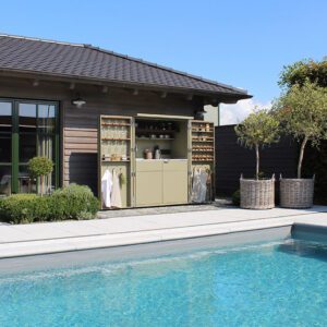 The CUBIC KITCHEN IN A CUPBOARD offers everything you need for better overview and order when cooking outdoors. You can place everything that is regularly used for outdoor cooking spices, pans and kitchen utensils as well as crockery. The entire contents of the cupboard are visible, within reach and in the designated place. There is storage space for all the utensils you need in the kitchen, but nothing unnecessary beyond that. This is ideal for terraces and all those who may need a little more storage space. The CUBIC KITCHEN IN A CUPBOARD can also be additionally equipped with a sink, a dishwasher or a refrigerator. The entire interior is well protected from bad weather and stays perfectly clean all year round – so cooking outside can start right away, even without the need for extensive cleaning in advance. Of course, the CUBIC KITCHEN IN A CUPBOARD also corresponds to the usual CUBIC quality: absolutely weatherproof, 365 days a year!
